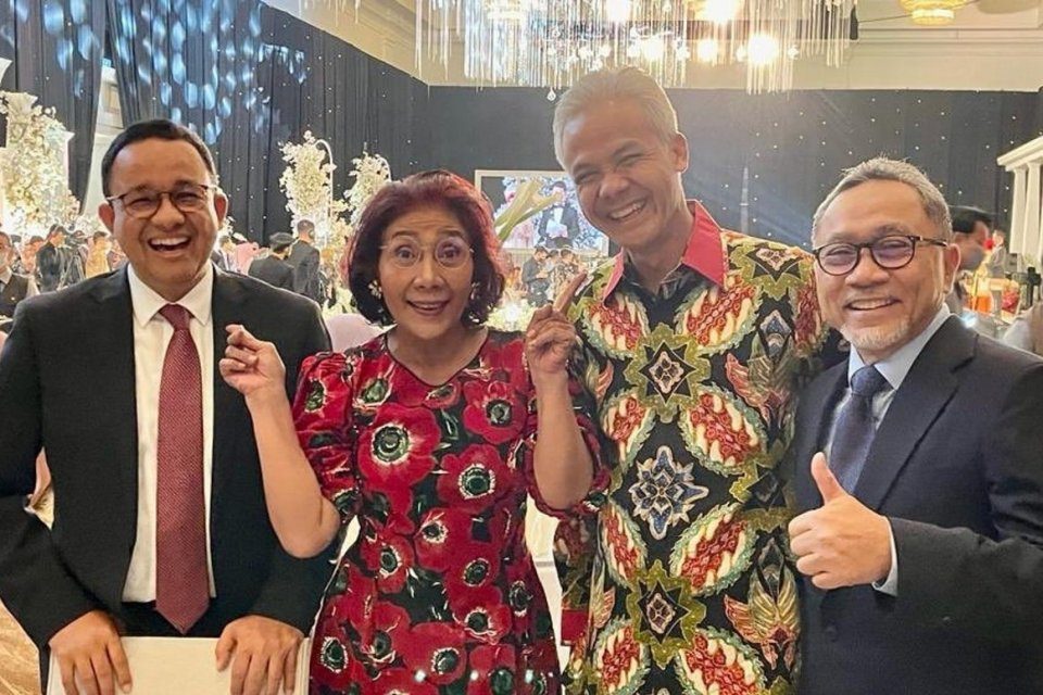 照片中,苏西站在阿尼斯的中间,阿尼斯身穿黑色西装,右边系着领带。Ganjar 穿着巴蒂衫在他的左侧。兼任PAN主席的贸易部长Zulkifli Hasan(祖哈斯)也合影留念。