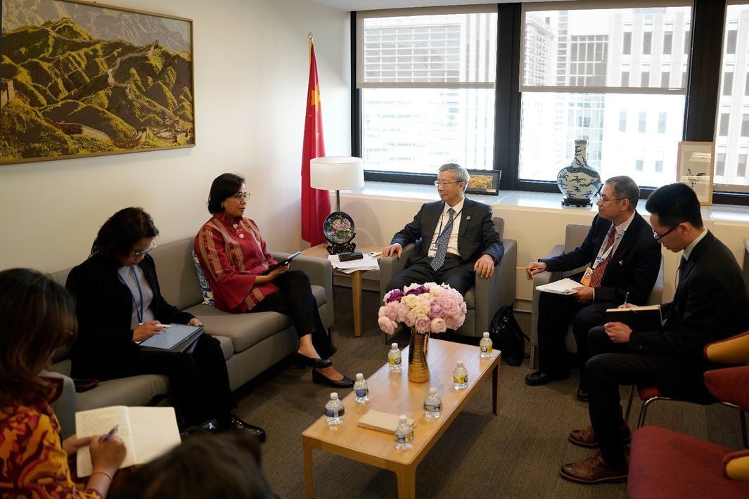 财政部长斯里穆利亚尼和中国人民银行行长易纲在出席国际货币基金组织-世界银行 2023 年春季会议期间进行了双边会晤。
